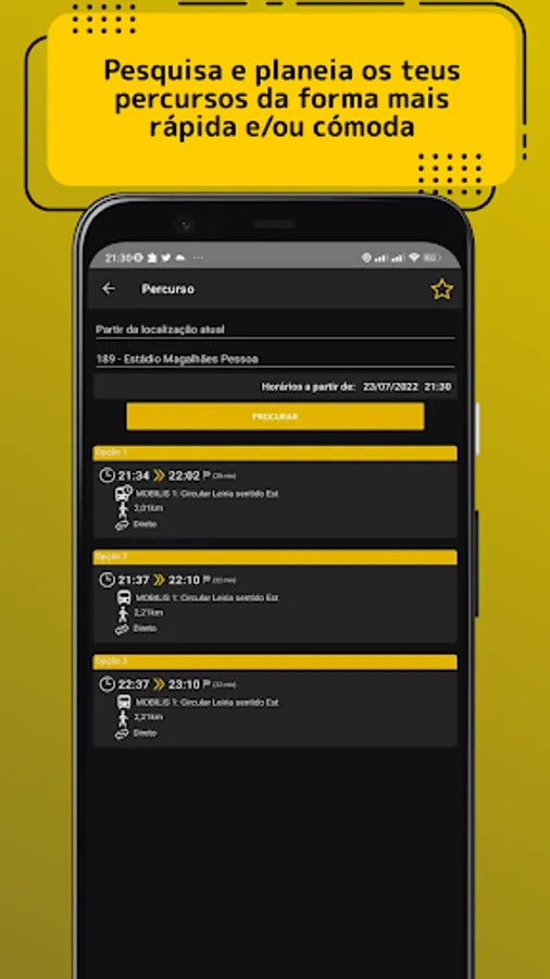 With the OlhoBus application, users can know in real time, when available, information such as the status of the service on a line, as well as the arrival times of a bus in real time.
