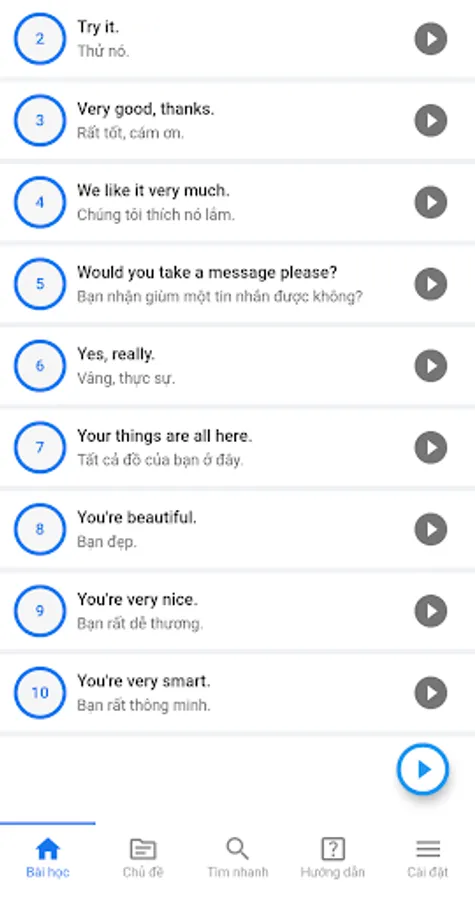 Each lesson, we only learn 10 sentences, each sentence is short, so the total study time is only about 2 to 3 minutes, equivalent to listening to 1 song only.