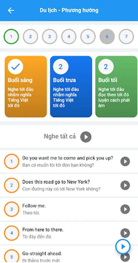 + Morning: We listen to slow speed. Listen to where you read aloud (or read aloud) the Vietnamese meaning there. To link English listening and Vietnamese meaning together. Each sentence is repeated 5 times.