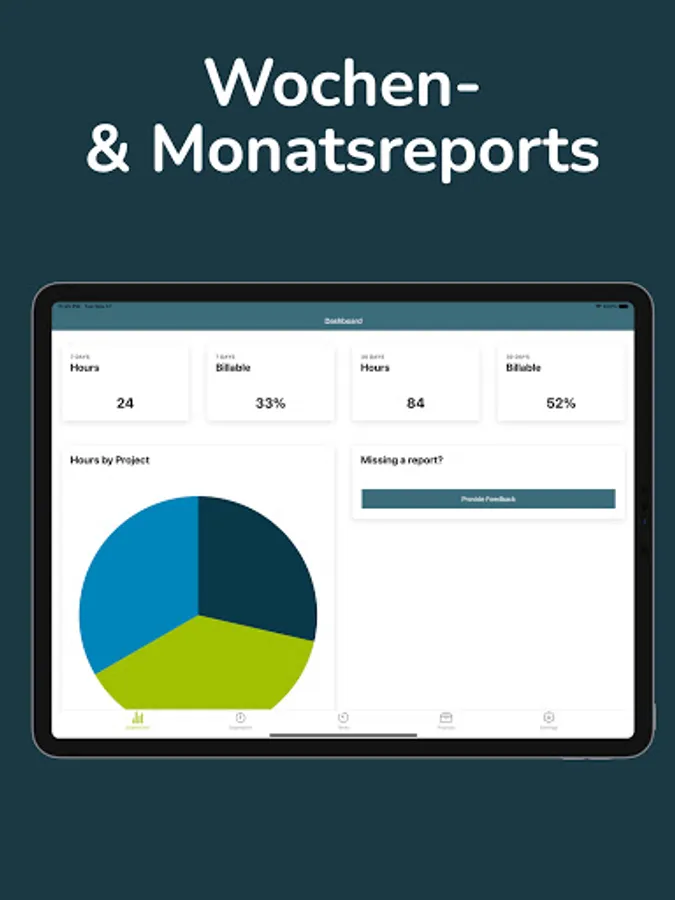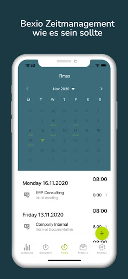 BexTrack allows you the recording of your working hours with a simple push of a button on the goad. Check you current weekly as well as monthly performance in the dashboard view and get reminded to record your time by the end of the day.