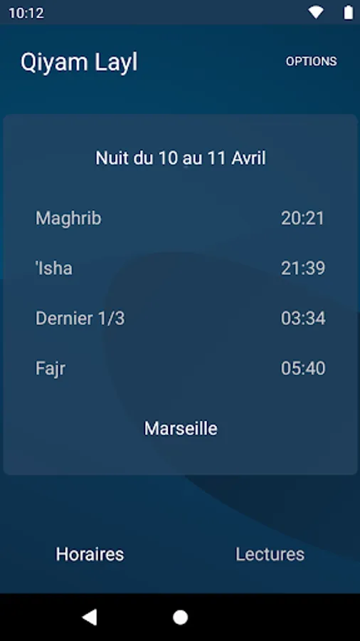 Qiyam Layl helps you in your night worship by indicating the times of the night prayers as well as the start of the last third of the night. Privileged moment for invocations.