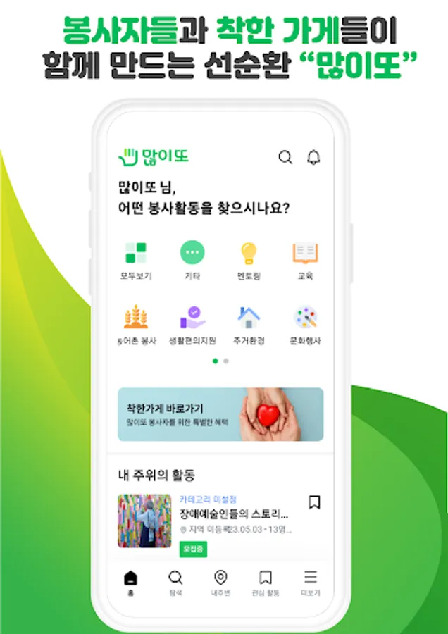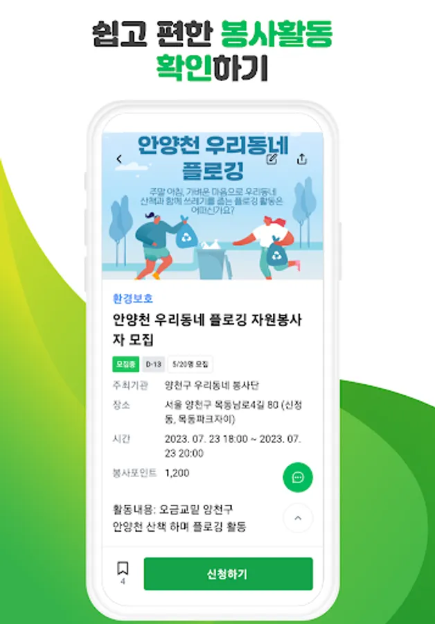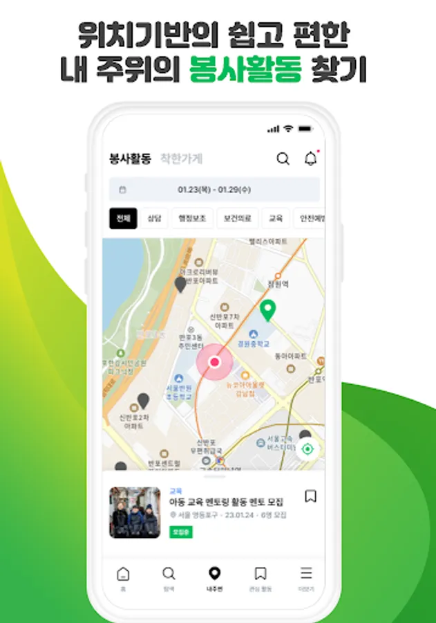 In our lot, volunteers can easily find various volunteer activities going on around them by using location information. You can search for and apply for volunteer activities according to the conditions of your desired field, time, and place. This allows volunteers to have a meaningful service experience by participating in activities that fit their interests and time.