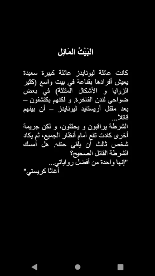 A new novel from the novels of the giant writer, who is considered the greatest author in history in terms of the spread of her books and the number of copies sold, and she is - undisputedly - the most famous of the crime story books in the twentieth century and in all other eras. Her novels have been translated into most living languages, and the number of printed copies has reached nearly two thousand