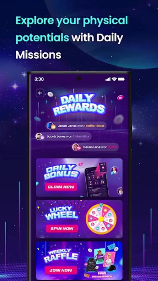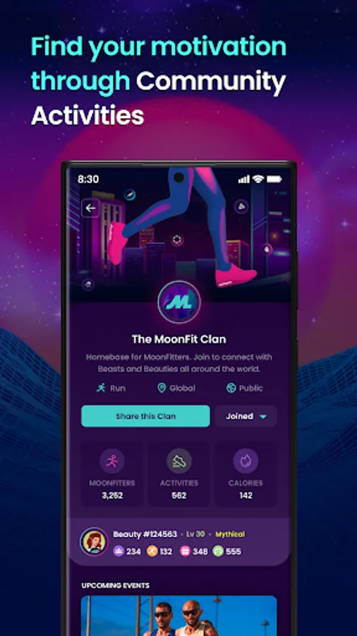 MoonFit use NFT to elevate users' experience. Each NFT is unique and you can use it to connect with your clan, treat it nicely as a training friend, improve it everyday as you improve your health.
