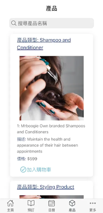 A booking system of MrBoogie which offer hair care products that customers can purchase to maintain their hair between appointments.