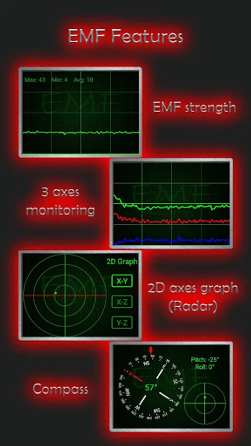 1) EMF Advanced: EM Field detector and analyzer with graphs sounds and more.