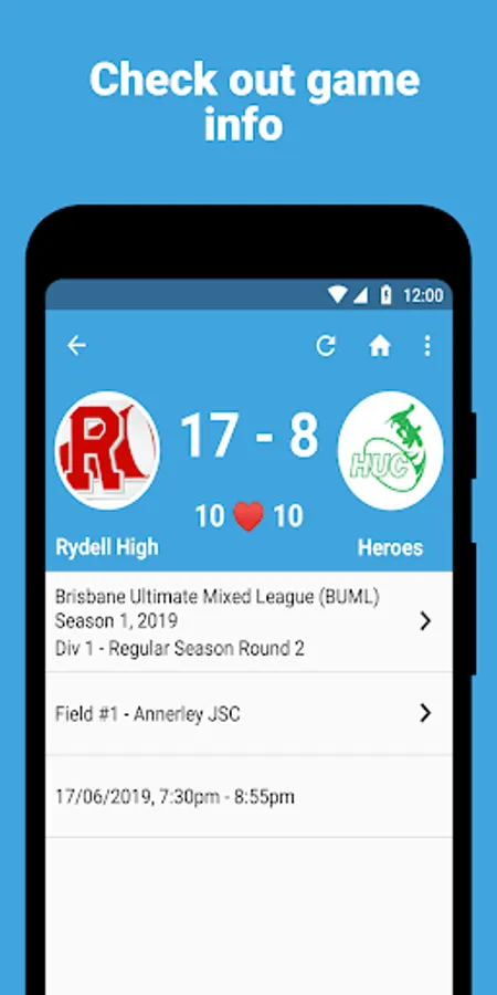 This is an unofficial app created by a keen frisbee player/IT student and is not created or endorsed by Ultimate Central or Topscore in any way.