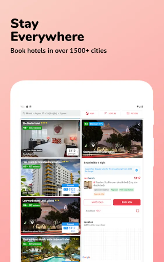 Other than hotels you can also search for Motel booking, villa booking, apartment booking, etc.