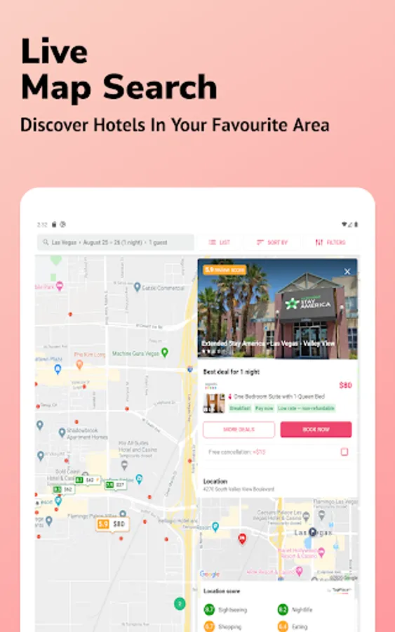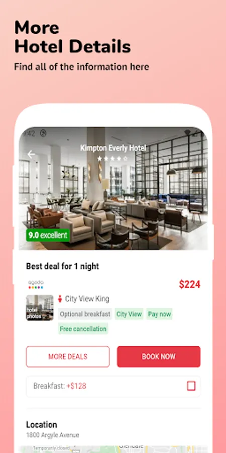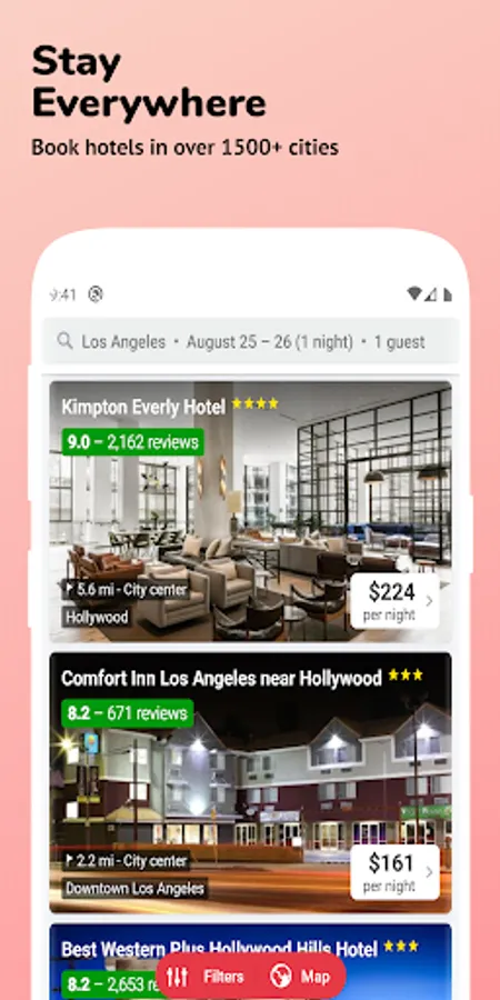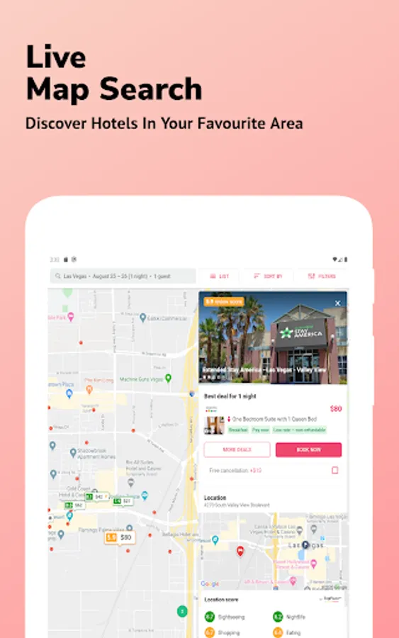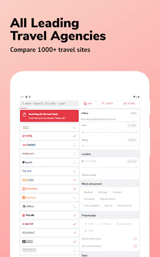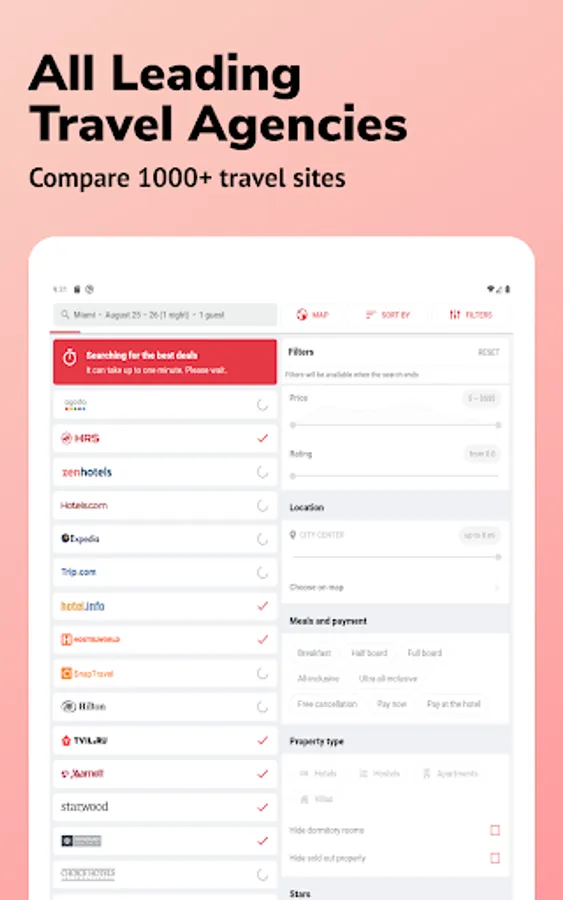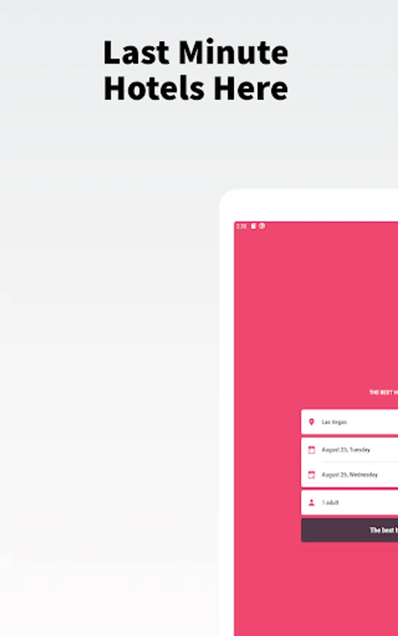 "Last minute hotels" app provides you with the best lastminute hotels around your location for your lastminute hotel reservation. Our app has exclusive deals and offers on hotel booking. Last minute hotels app is a helpful way to explore costs in all global booking systems and give the data in a clear and user-friendly way. You can search for more than 7 million hotels in 200+ countries, all the best option are shown in one single page. Compare prices and special offers on more than multiple sites for searching and booking the best hotels for you. You can search for any hotel and book your hotel without any charges. Our app provides hotels in all categories like low budget, business hotels, countryside, family, gastronomic, romantic, spas, ecological, economic hotels, etc.