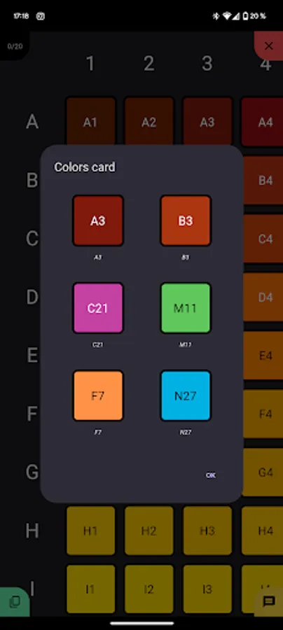An online game for two in which one person has to describe the colors, and the second person has to guess which color on the field corresponds to the given description.
