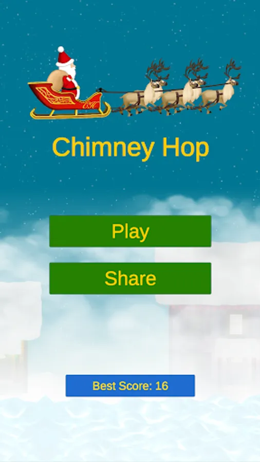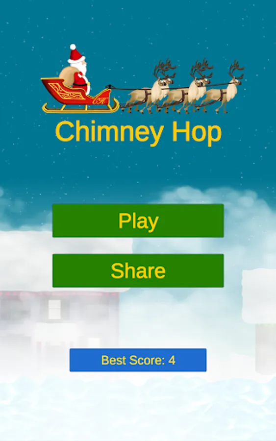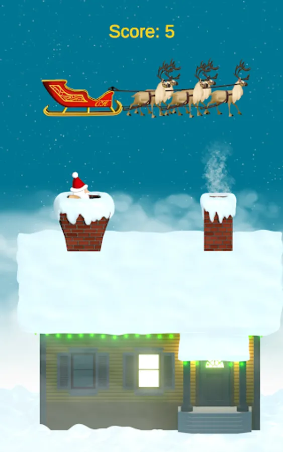 Chimney Hop is a Christmas Game fun to play for all. It has the Christmas feeling with lots of Christmas icons: Santa sleigh, Santa's reindeer, Santa with his bag of toys and presents, falling snow, houses with chimneys, Christmas lights and many more to get you in the spirit of Christmas. Just a nice positive scene with soothing sounds in the background.