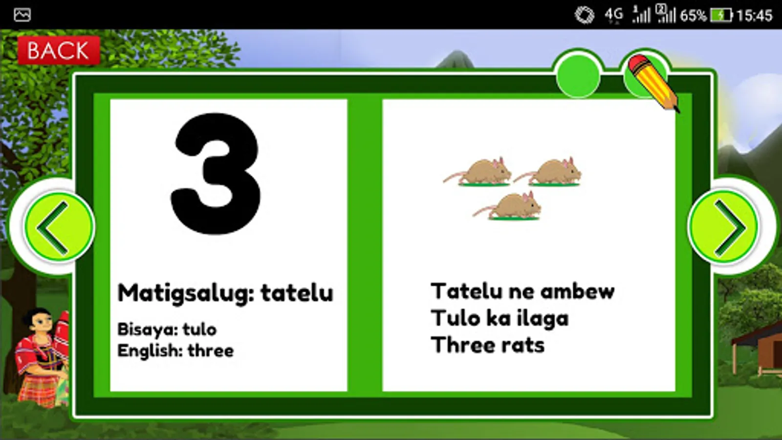Matigsalug is a literacy app meant to teach basic literacy to young learners of the Matigsalug tribe in the Philippines as well as those who want to learn more about the culture of the tribe.
