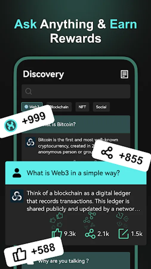 Ask brilliant questions on X AI and get rewarded for every reaction they receive! Each time your conversations are liked, shared or quoted, you earn redeemable Credit rewards. You can also discover witty questions & fun conversations made by others while having a blast learning new knowledge.