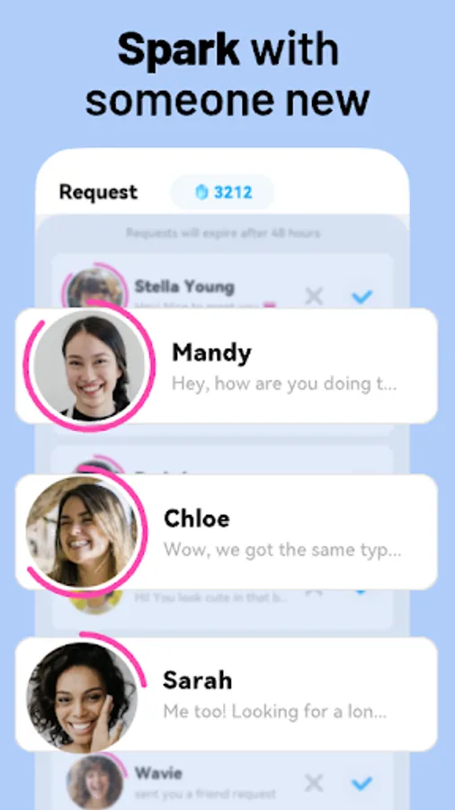Swipe through a ton of profiles from all around the world to meet new friends! Swipe right on those that vibe with you and start chatting right away!