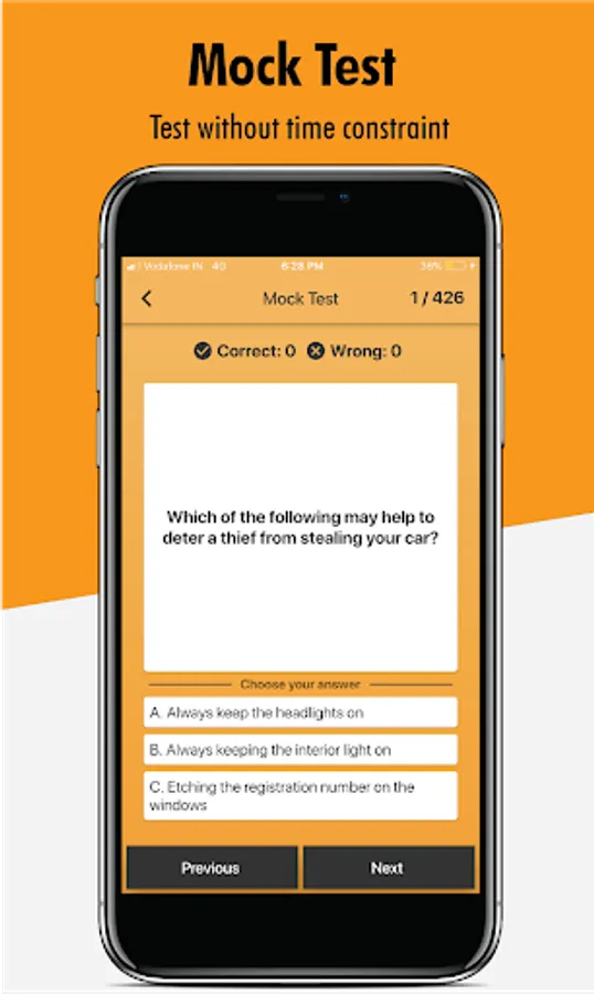 Give test as you would in RTO Exam.