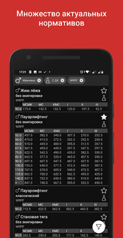 - FPR (Powerlifting Federation of Russia): powerlifting, bench press.