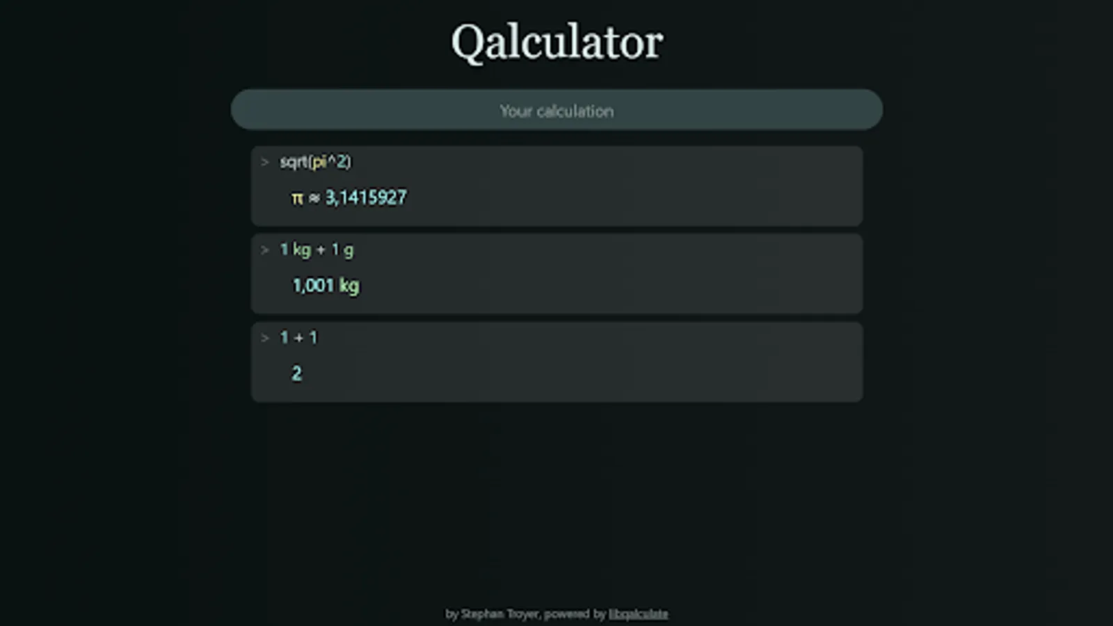 Whether it's calculations with units, physical constants or symbolic expressions, this calculator provides you instantly with results, thanks to the power of libqalculate.