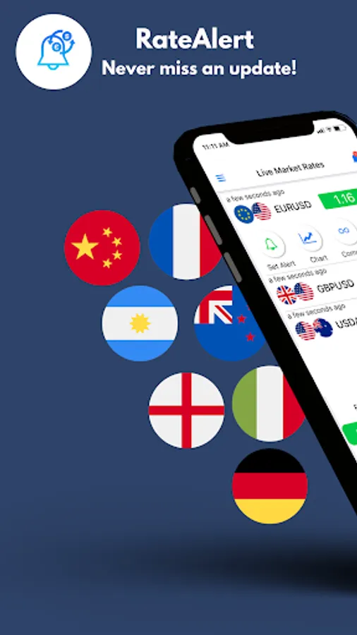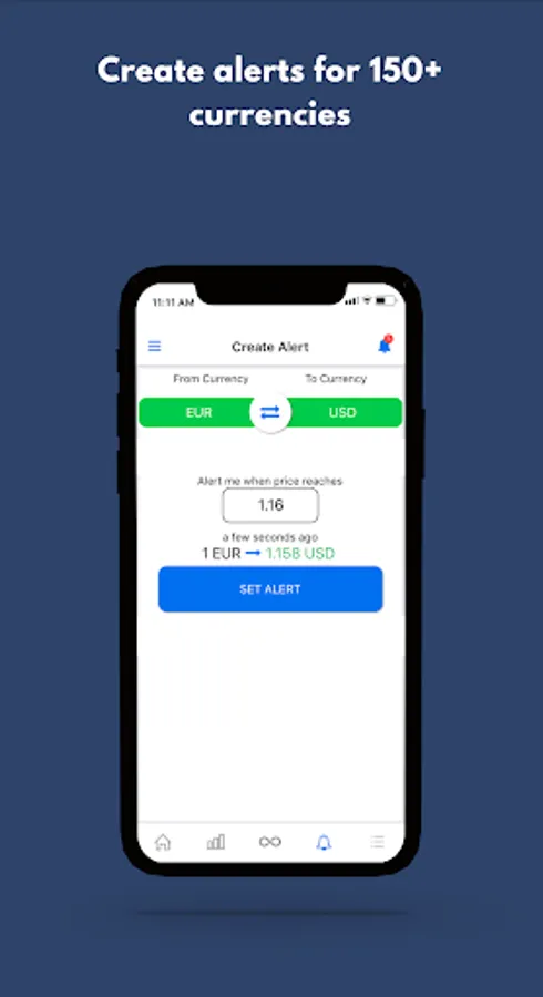 A free, fast, flexible, simple currency exchange rate alert app. Currency exchange rates for over 150+ currencies with live ticker. Simply set up rate alerts for the currency you would like to watch and your desired exchange rate. Once the current exchange rate reaches the right value, we'll send you a push notification immediately.
