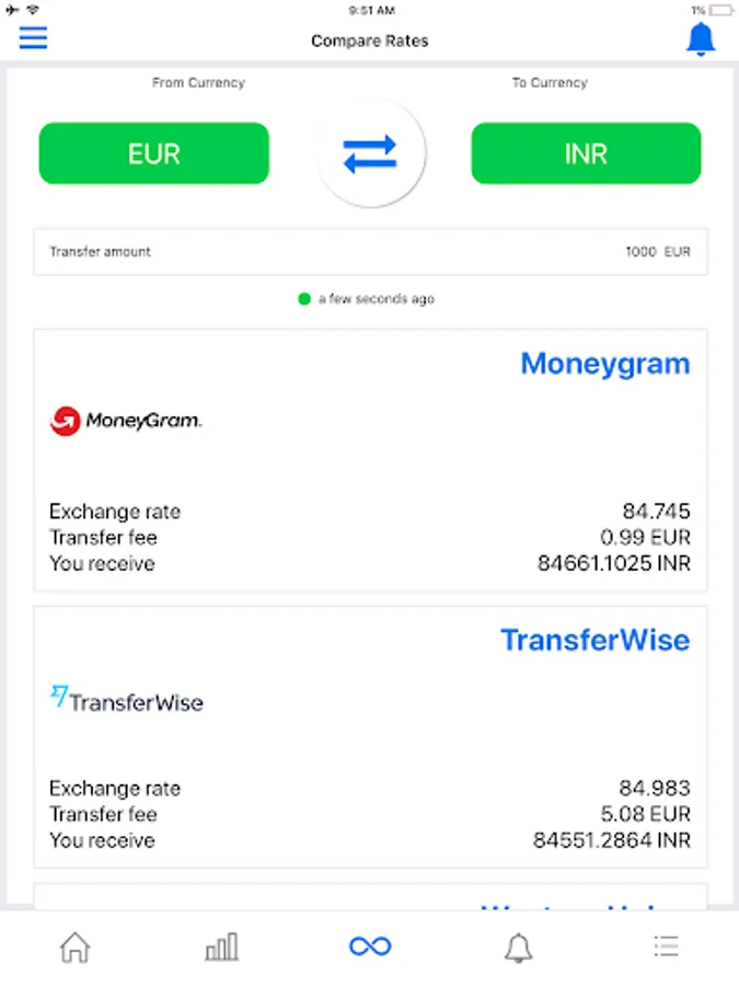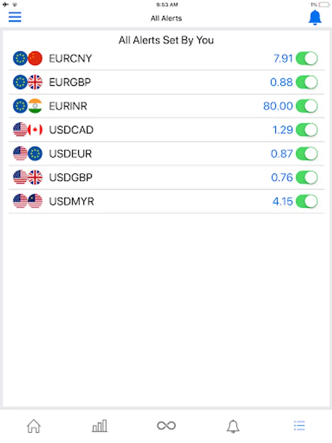 Rate Alert app shows you all the information you need in one single screen: