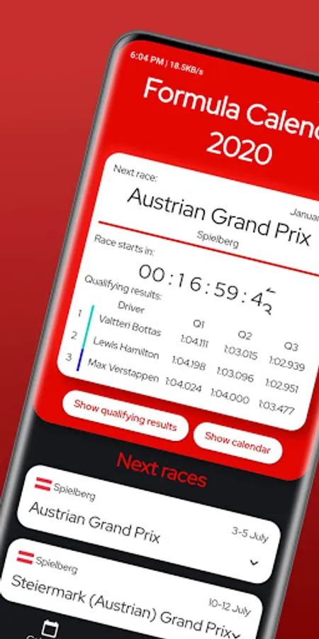 Formula Calendar is a modern calendar app for F1 where you can view the dates and times of free practice, qualifying and race of Formula 1.