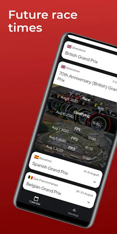 The F1 Calendar will always be up to date with the official Formula 1 calendar.