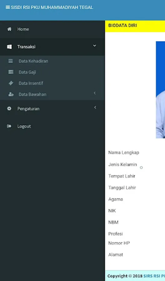 SISDI is a computer program in which there are menus that are useful for employees of PKU Muhammadiyah Hospital Tegal.