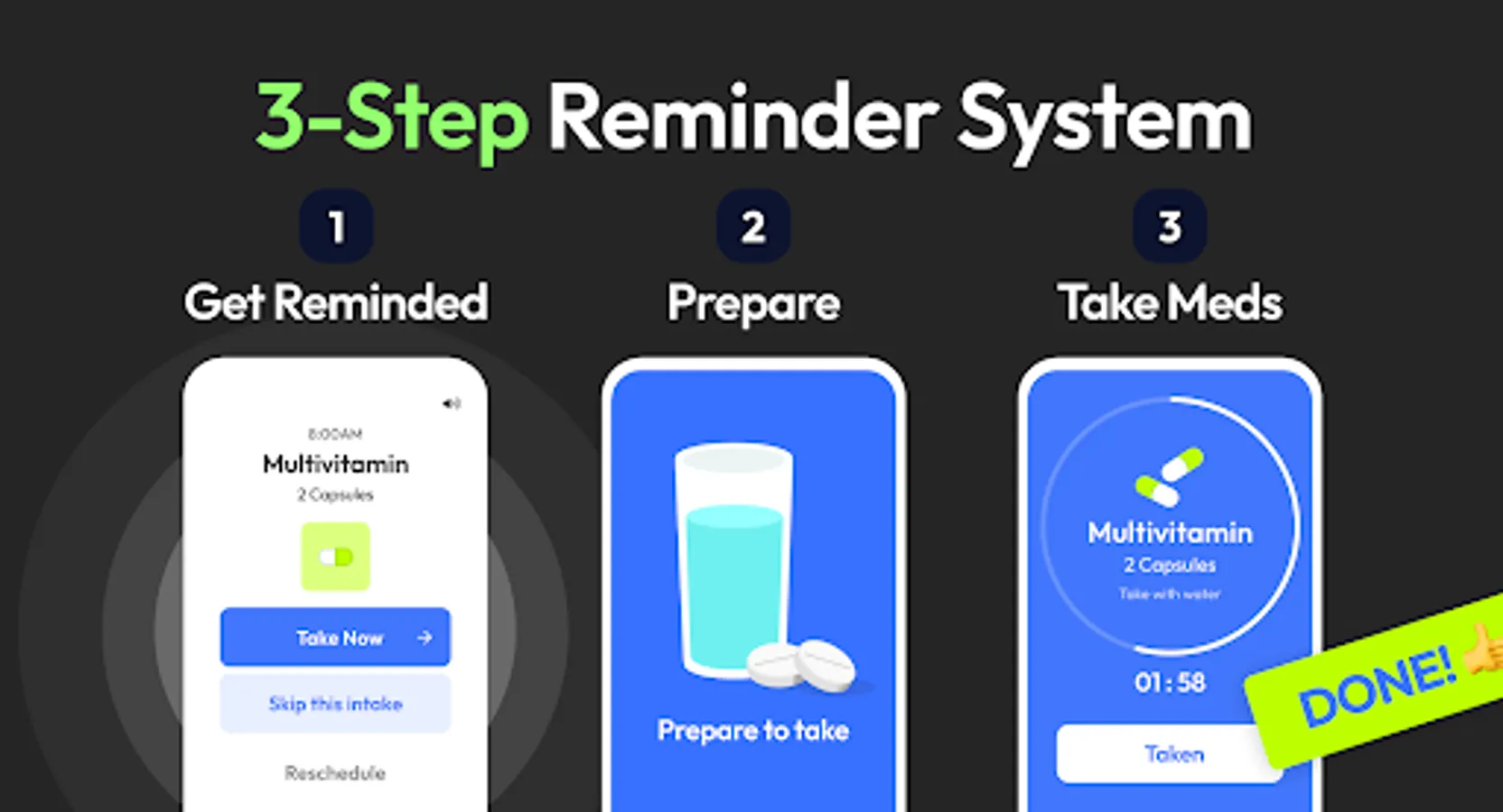 Medication Reminder contains a time-box feature letting you take your medication without delay. It's a science-backed habit-making feature to makes you take your med immediately