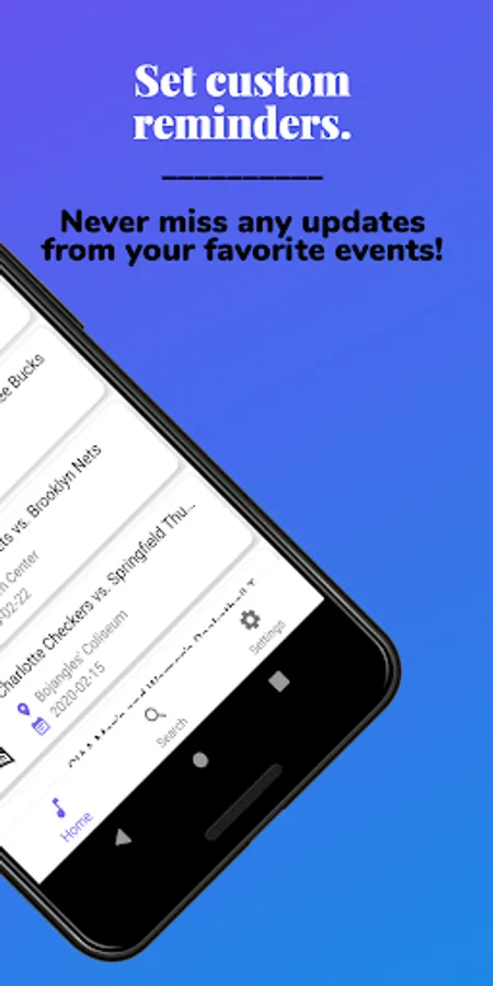 We let you discover and track events ranging from Concerts to Sports and Arts to Theaters, all just one tab away.