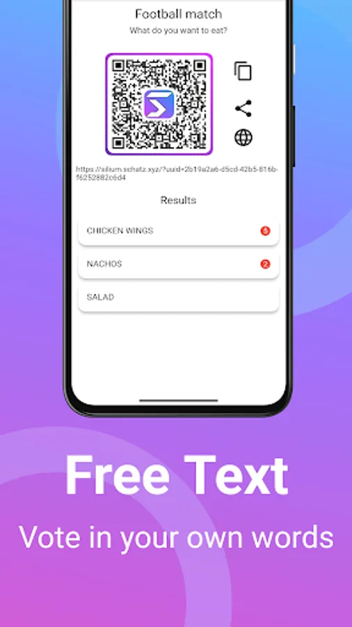 Also, you can see your generated polls and view the results.