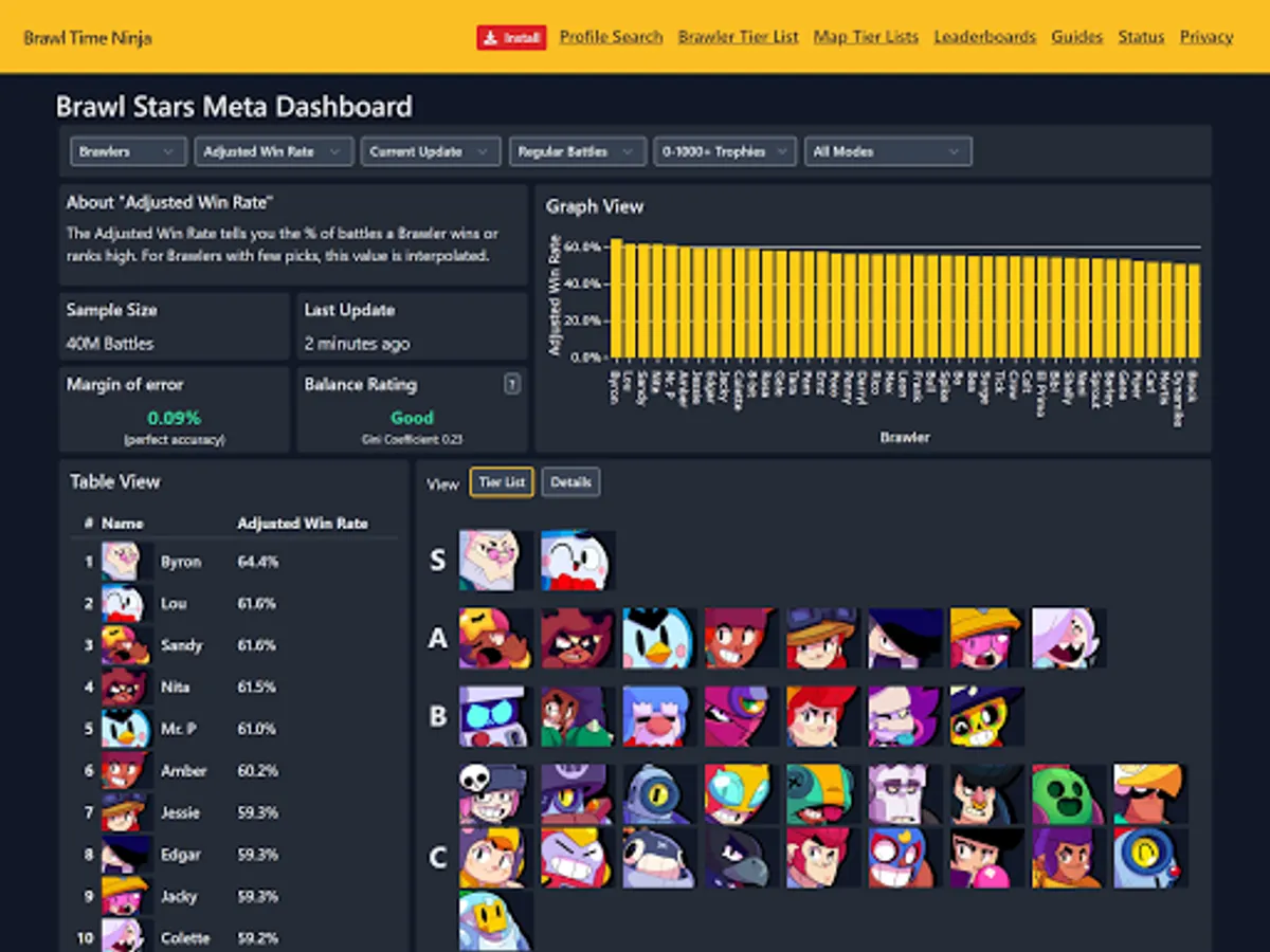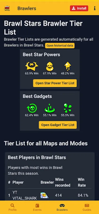 View Brawler Win Rates and Star Power Tier Lists. The Brawler Tier List shows you stats gathered from thousands of other players.