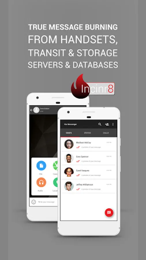 Almost every chat messenger app nowadays provides the ability to ‘delete for everyone’. Most people believe that using this function to delete their messages will delete that message literally, from everyone. However in most cases that is not the case. When a message is deleted on most competitor chat messenger apps, the message is deleted from both the sender and receiver handsets however an encrypted (hopefully) version remains on transit and storage database servers.When you select a message or messages for deletion with Incinr8 the messages are not only deleted from both sender and receiver handsets but also all transit and storage servers that that message has used.