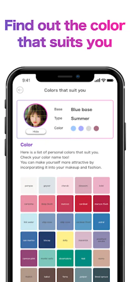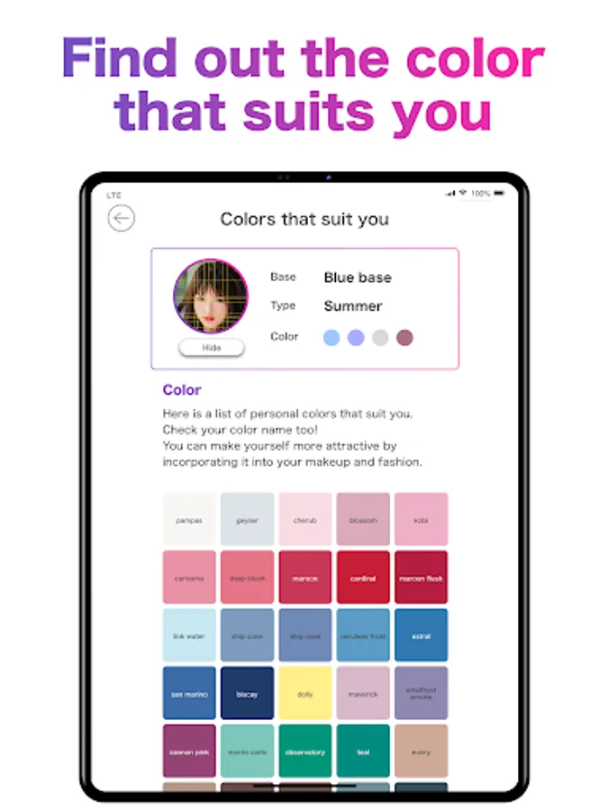 It also diagnoses your personal color based on the color of your skin, hair and eyes.