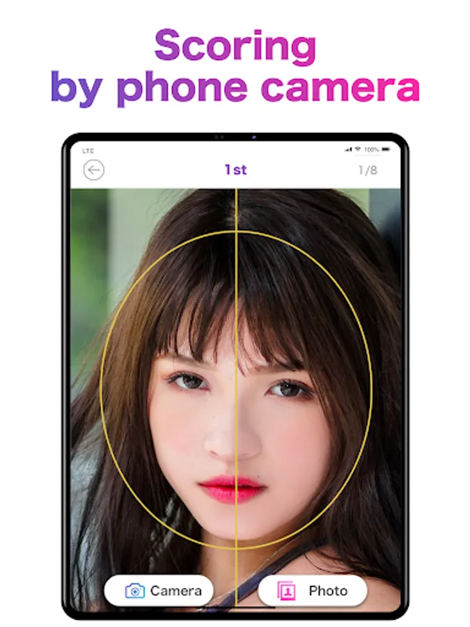 The score is based on the proportions of each facial features, such as facial contours, eyes, nose, and mouth.