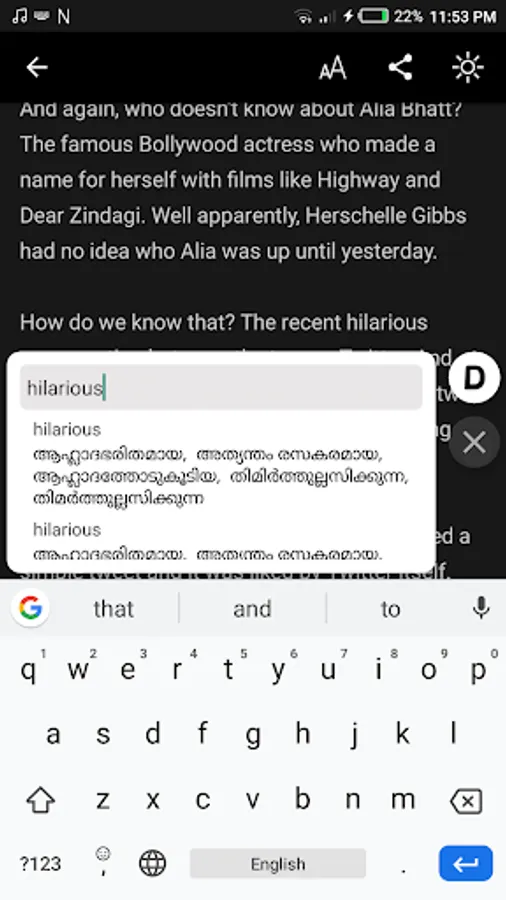 English To Malayalam Floating Dictionary - the easiest way to learn and translate into Malayalam language fast within your Android devices and Tablets.