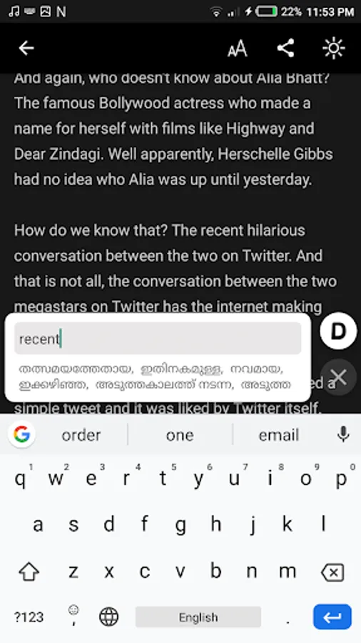 English To Malayalam Dictionary And Translator provide Malayalam keyboard to write the message, store, emails, Facebook post,Whatsapp messages, Tweets in Malayalam and many more social media posts in Malayalam.