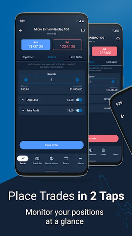 - Place trades in a few taps
