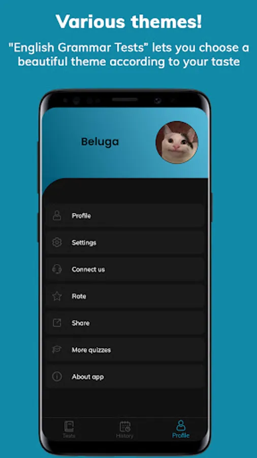 “English Grammar Tests” supports multiple themes so you can choose them according to your taste. Furthermore, our application is fully offline so you can use it whenever and wherever you want.