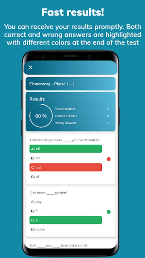 Learning a language requires a lot of books and different online resources to be used. Sometimes these resources can be misleading and untrustworthy. “English Grammar Tests” solves these problems by offering you premium quality questions. You can easily access these questions and test your knowledge. Our application evaluates your work by showing you all the correct and wrong answers. Also, all of the tests that you solved are recorded with the timestamp and displayed to you using the calendar so that you can easily review and analyze them.
