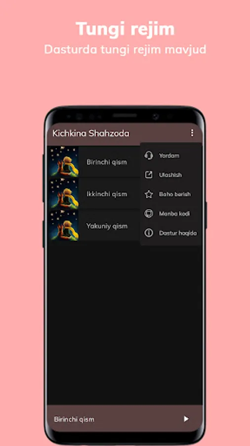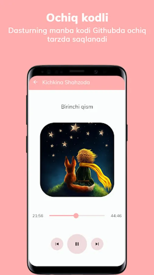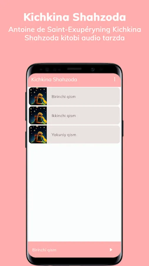 Dasturda Antoine de Saint-Exupéryning Kichkina Shahzoda qissasi audio-kitob formatida joylangan.