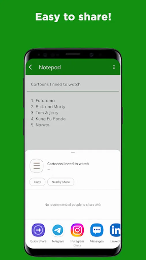 Notepad is completely offline and ad-free. Also, it is very lightweight and fast as a rocket. Its interface is so user-friendly and simple that even your granny can use it. Regarding adding notes, it has never been straightforward like this.