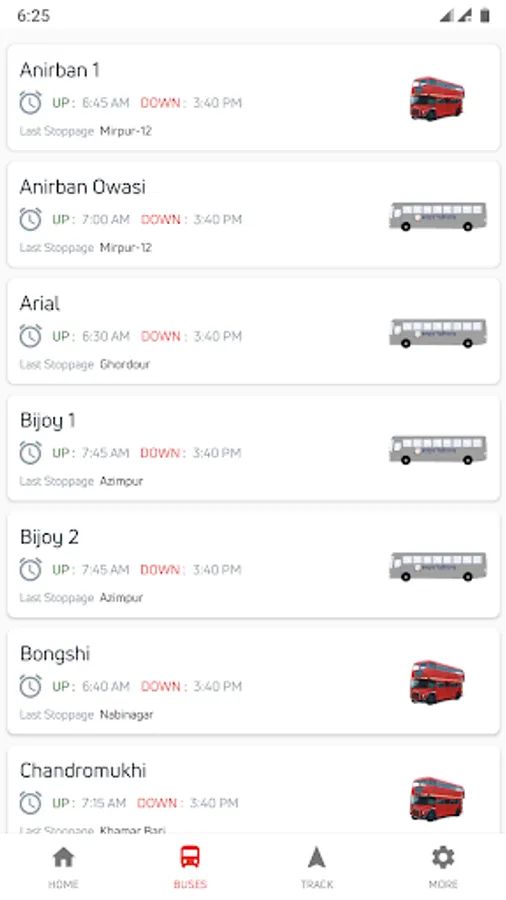 In this app we want to focus on tracking the buses in real-time, getting updated routes and bus schedules. By tracking the bus, we can know the bus location without calling to the driver. Here, we can also see the bus route on the map and when it's leaving from the last stoppage to Jagannath University and Jagannath University to the last stoppage.