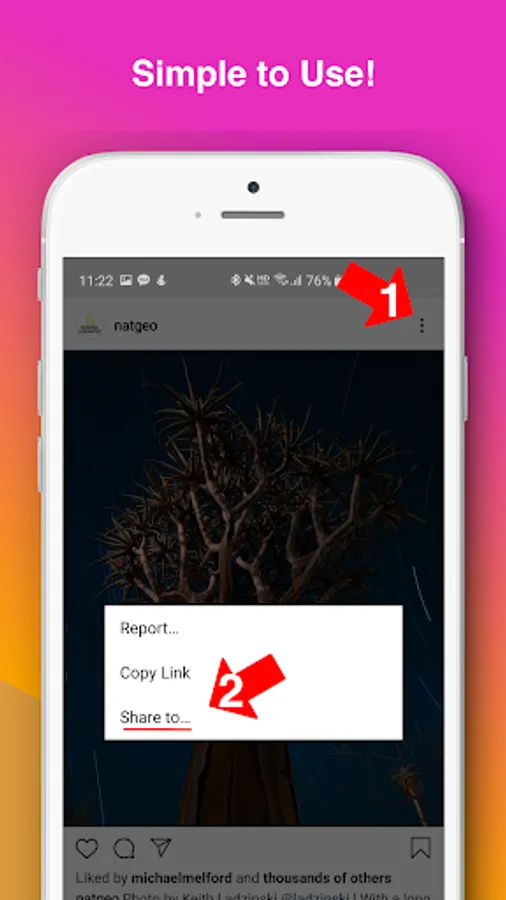 * Click Download button in the Instant Like App to download image.