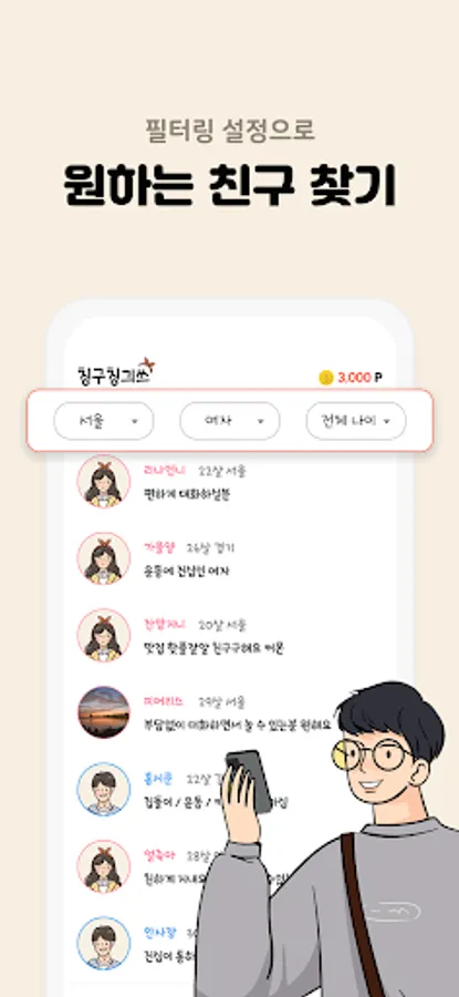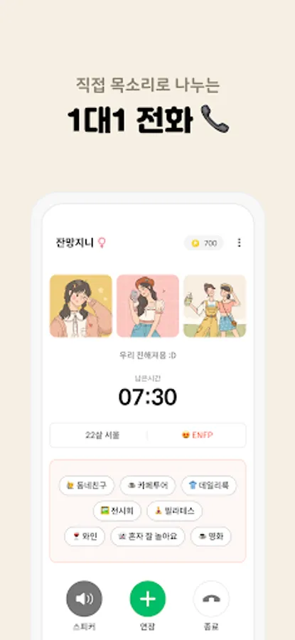 Find the friend you want with custom filtering and get closer with one-on-one calls, conversations, and group chats!