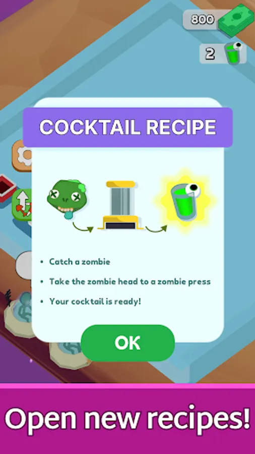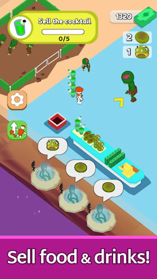 You can catch zombies on your farm and create cocktails or make patties out of them! You can choose whether to sell these dishes or create flavorful burgers from toothsome reanimated buns! It's up to you! Create dishes and sell them to your customers as soon as possible!