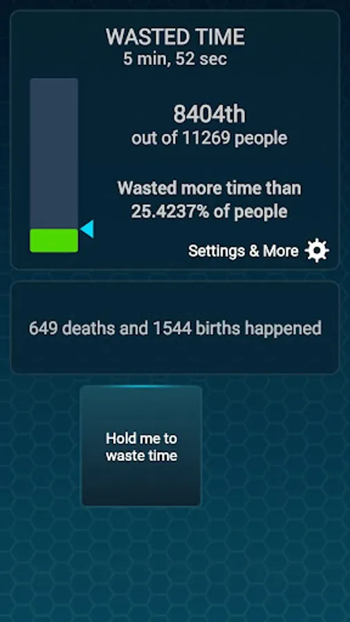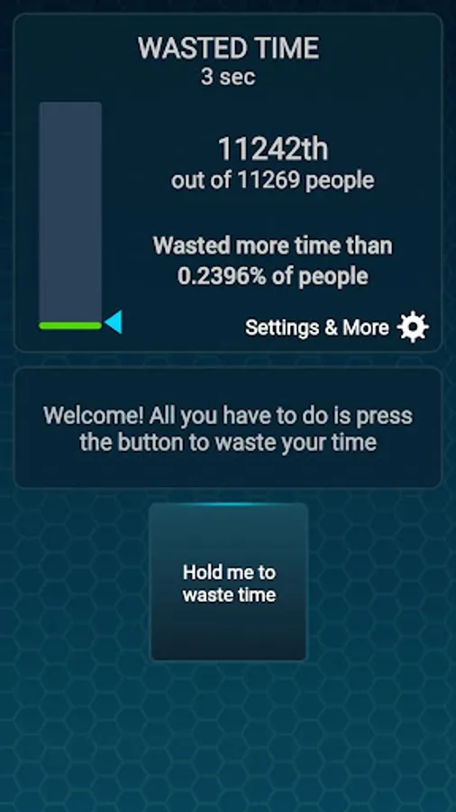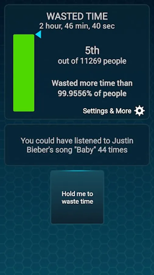 Wasted Time offers the opportunity to see how much time we have to waste, how many other people also decided to Waste their time with you, and ultimately if you can become the biggest Time Waster.