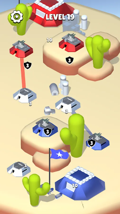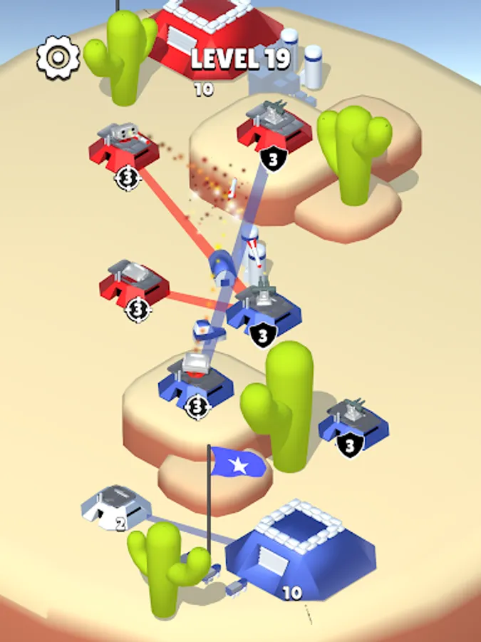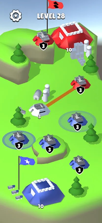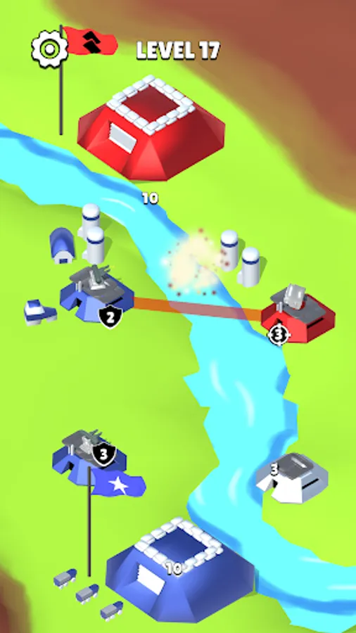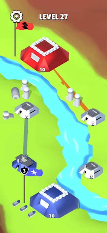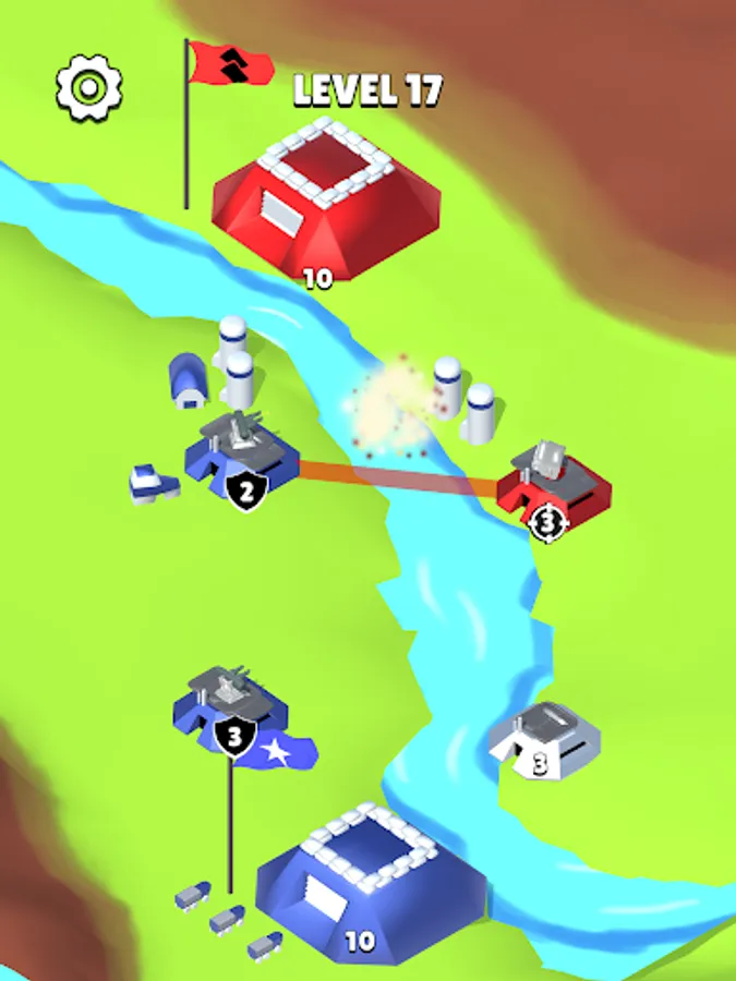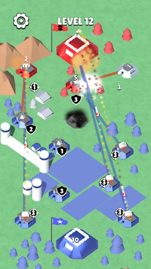 A military-themed strategy game where you have to play with missile troops and air defense. Capture bases and rocket launchers. Switch them to attack mode - to attack or defense - to defend your base. You need to destroy enemy bases.