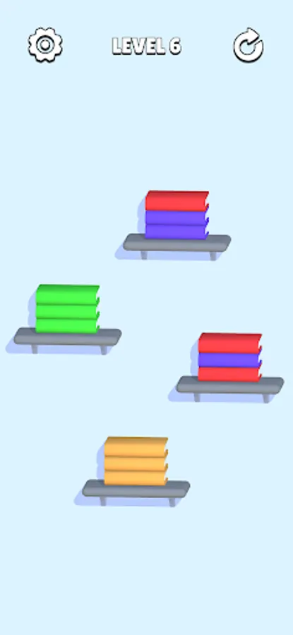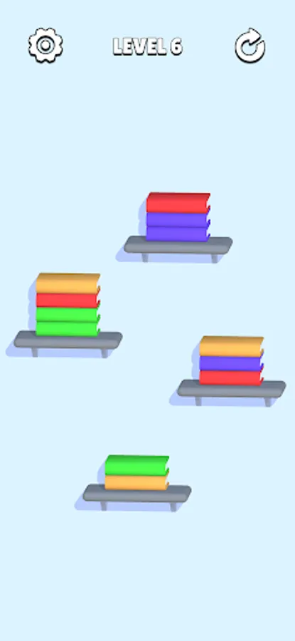 A puzzle about sorting books will help develop imaginative thinking. There are three types of tasks in the game, sort the books by color, size and assemble them in a pyramid. True, not everything is so simple.