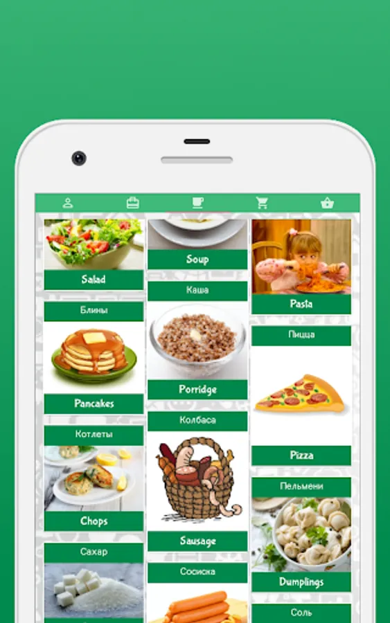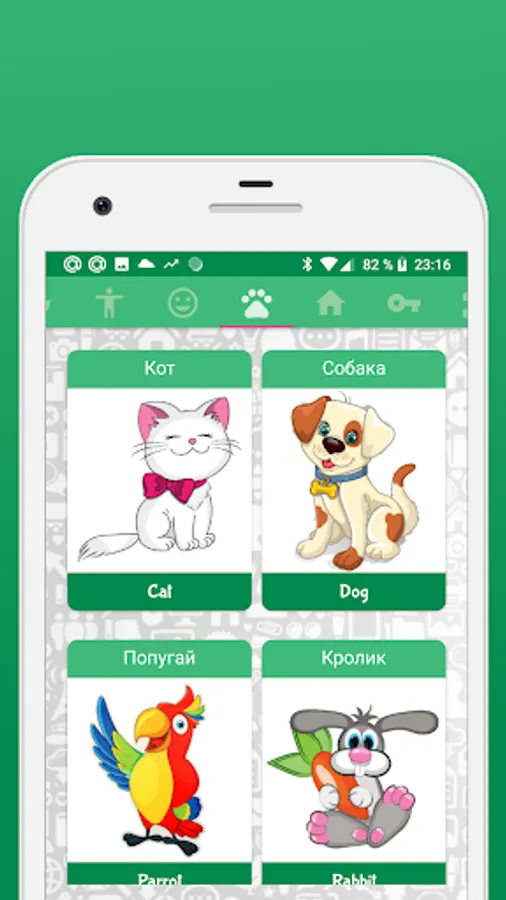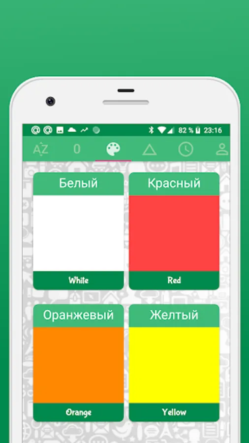 The application contains cards with the most necessary knowledge for a young child - the basic shapes, colors, main items and more.