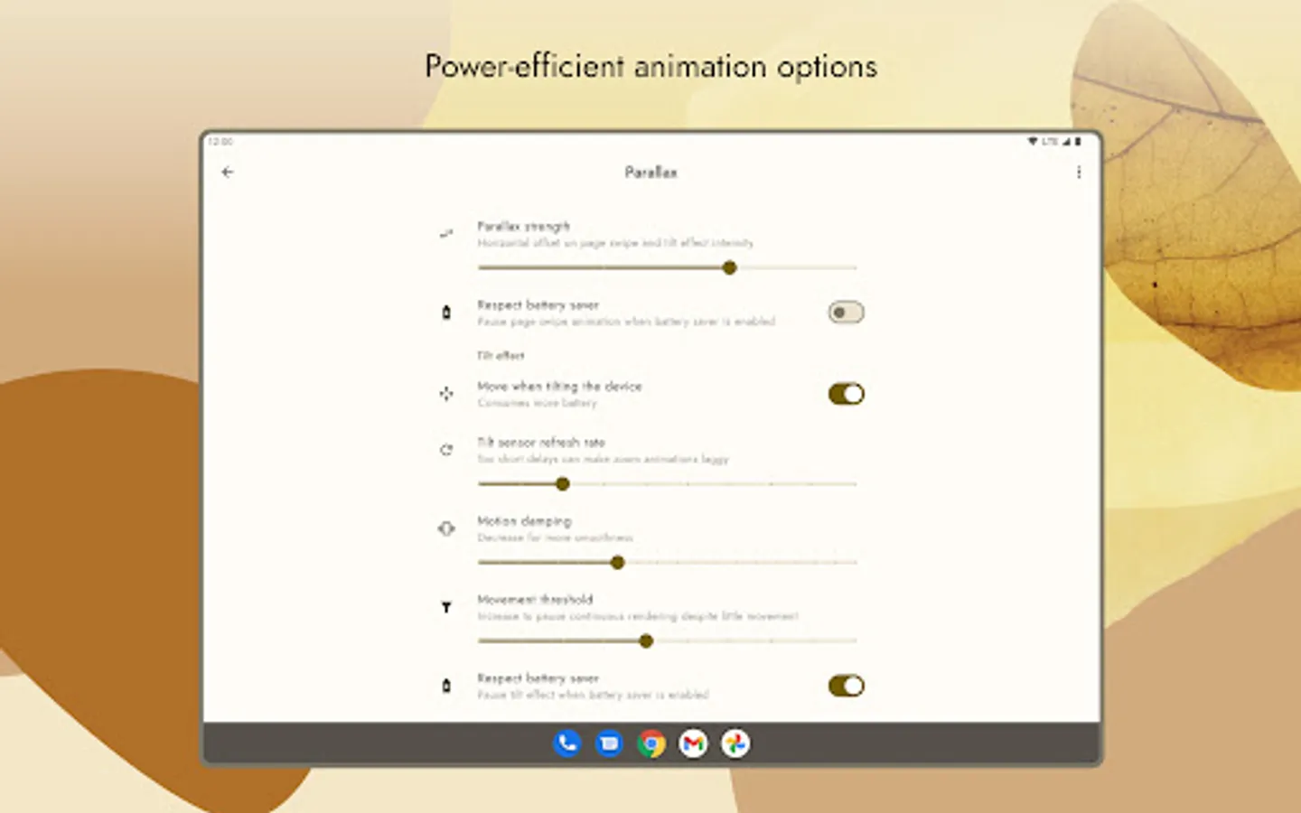 • Power-efficient parallax effect on page swipe or when tilting the device