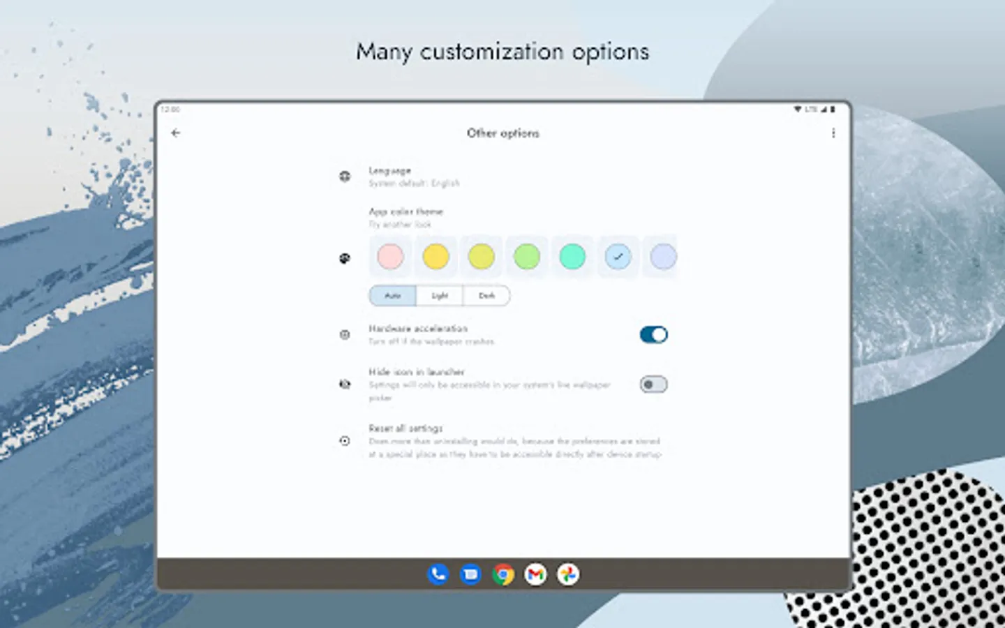 The app is not just a copy of the original wallpapers, it's a complete rewrite without the permanent animations to save battery and storage space. In addition, there are many customization options to match your preferences.